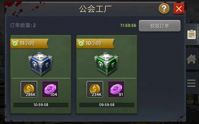 在公会工厂每日可捐献一次,每次只能在三中选项(20万金币、50钻石、300钻石)中选择一种进行捐献。不同的捐献选项能贡献不同的工厂经验,工厂经验可用来提升工厂等级。工厂等级越高,订单产量加成也越高。每次订单都需要一定的时间完成和在一定的时间后刷新,想要获得更多的金币和公会币,当然是闹钟提醒自己上线接订单啦!