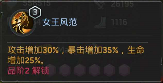 二技能:被动技能,提升攻击、生命和暴击。大大加强自己基础属性。
