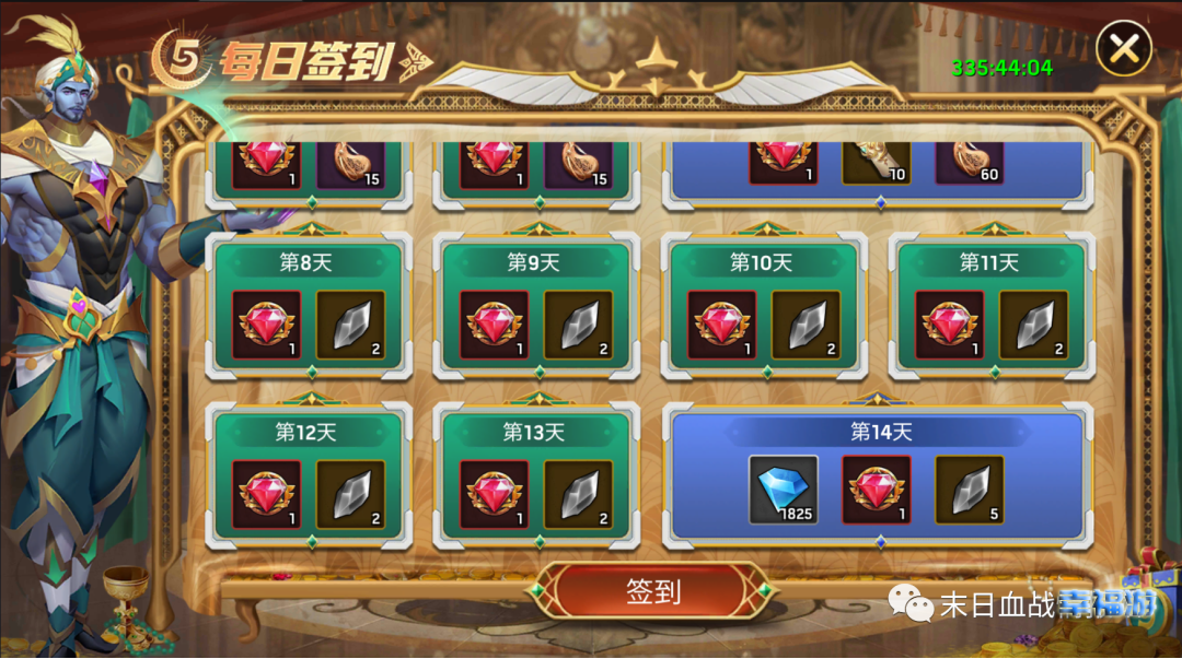 总计14个月币+150个水袋+60沙漠卷轴+17个黑水晶+1825钻石(14天的活动周签到奖励,更加确定双子周年庆的开启,到时候就看下一部分的周年庆有没有克里斯蒂娜)
