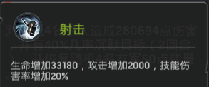 通过以满级战车为例,技能方面分成三部分:直接伤害(28万),控制方面40%几率沉默目标(2回合),增益方面,恢复随机4名友军50点能力。