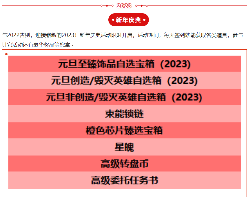 01 新年庆典是什么? 这是去年12月29日的新年庆典活动预告。 具体的内容,很多公众号都有发布。 1.签到奖励 相当鸡肋,也就钻石有点用。 白嫖一周大约1400道具(周五凌晨0点要登陆游戏刷新,否则会更少),兑换星魄+金信封最佳。 氪金: 束能锁链=448+68=516 橙色芯片=648+68=696 四系自选=648+448=1096 光暗自选=648*2+198+68*2=1630 首饰自选=648*2+448*3=2640 非常划不来。 除此之外,还有周卡: 我说它是用来骗氪的,没人反对吧? 这是去年同一时期上线的新年庆典活动。 同样是黑水周,非常鸡肋。 纯粹的骗氪活动。 新春庆典又是什么? 02 新春庆典是什么? 发布时间,2023年1月19日。 中国农历春节之前,新春庆典名副其实。 年初的1月19日是宝图周,与黑五相隔2个月,开启大型氪金活动是正常的。 现在12月29日,距离黑五活动才1个月,如果再次开启大型氪金活动。 小编有理由怀疑,末日游戏准备在新的网络游戏管理办法出台之前收割一波,跑路了! 那么当时的新春庆典有哪些内容? 新春庆典活动共分为3大版块。 1.祈福活动 终极奖励如下: 里面包含当时已经上线的所有各阵营排名前五的英雄(当期新英雄诺娃除外)。 性价比最高的无疑是没有进月度的比如夫人、蕾贝卡等四系英雄和艾芙琳、海拉伯爵两个光暗英雄(对应今年的那摩天和奥薇莱特)。 2.新春福字 其中又细分为吉祥如意、招财进宝、万事大吉三个版块。 吉祥如意: 白嫖奖励比如这些: 氪金奖励比如这些: 终极奖励:日月星辰,需要福字6950。 类似黑五期间的达标活动。 福字获取来源如下: 在做5轮宝图的基础上,需氪金挖穿15层,同时花费12000钻石,然后兑换下面三个奖励,即可获得日月星辰+尼罗河之泪(挖宝15层)。 如果可以做5轮宝图,氪金约为1.3w。其中挖宝1w,氪金买超值礼648*5。加上白嫖的兔儿爷即可换取上图三种奖励。 宝图还缺的,再额外补充氪金。 招财进宝: 达标后消耗钻石购买。 不提。 黑五几乎消耗了绝大多数玩家手中的宝图。 不做宝图的前提下,大约能白嫖到1000档位的奖励。 万事大吉: 福字达标之后,还需要氪金。 不太推荐。 福气(服气)红包用来兑换最终的海拉伯爵。 实际上几乎都要抽奖抽完,才能拿到。 不值得。 新春庙会: 单独氪金不划算。 配合福字活动搞日月星辰尚可。 小结: 新春庆典对氪金玩家而言确实不错。 03 本次新春庆典还是新年庆典? 小编倾向于认为本周五的是新年庆典,而不是新春庆典。 理由如下: 1.大型氪金活动距离黑五太近了。 2.时间上和去年对应,也应该是新年庆典。 3.黑水返场英雄不管是谁(目前爆料是施莱德这个垃圾),实际上对大型氪金是不利的(可乐、宝图相对更合适一些)。 4.新春庆典,对应的应该是春节,目测配合春节期间的可乐活动展开。