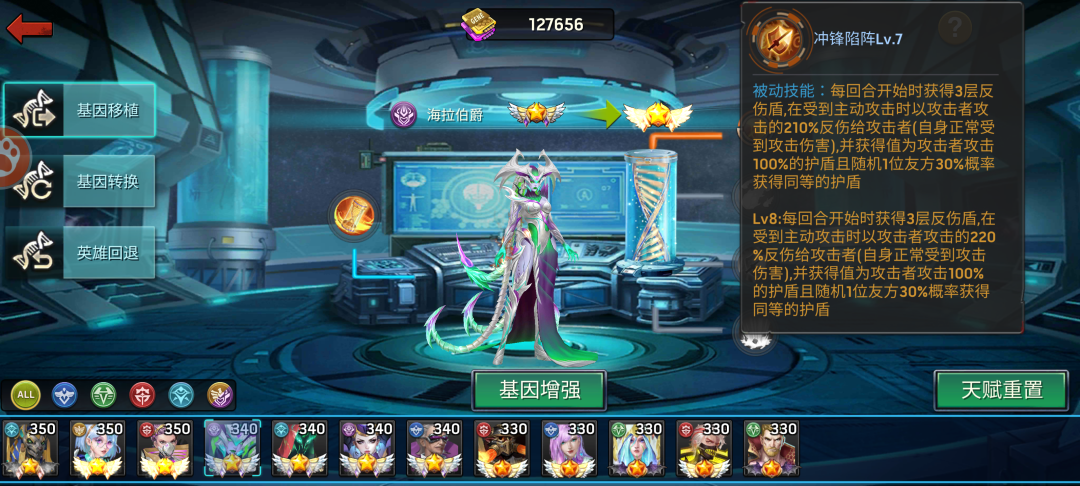 冲锋陷阵,光暗专属,「鸡肋」天赋,作用在于每回合附加反伤盾;
