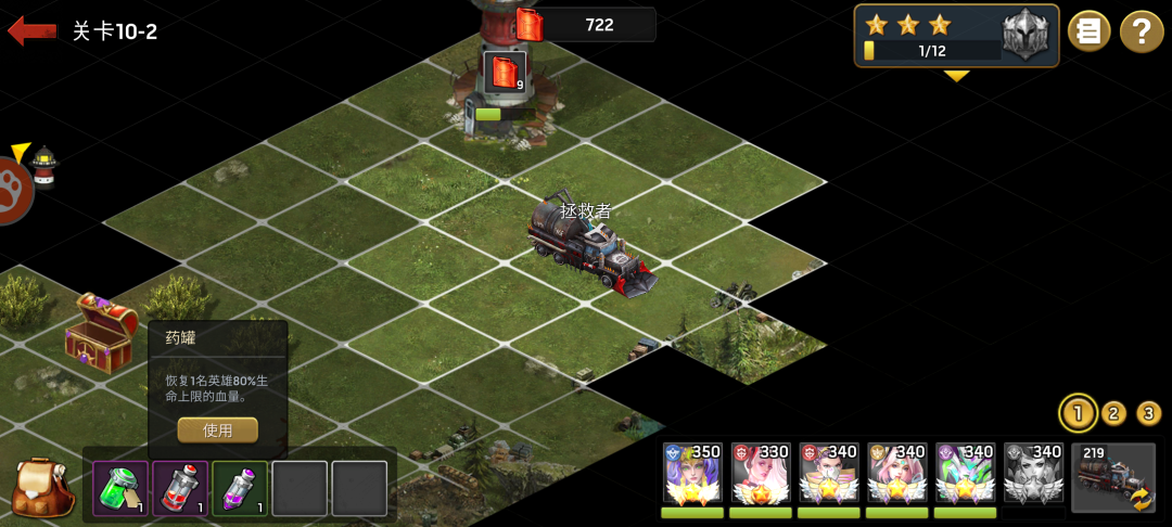 ⑴进入副本前,可组建3支队伍,第1支为主力阵容,战车建议用治疗车;
