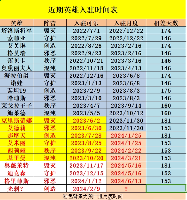 大家好,以下为历史英雄登场及入驻月度时间表(建议收藏备用):