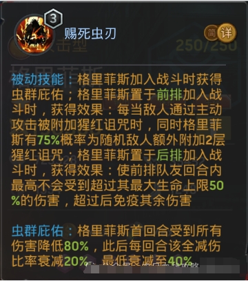 另外虫群庇佑使格里菲斯获得全伤害减免,到了格里菲斯达到天赋四时,该效果有大幅增强!
