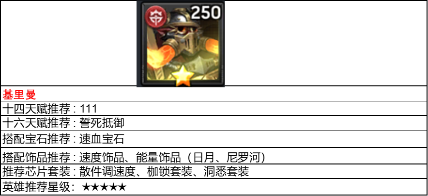 格里菲斯:对抗没有基里曼的队伍强度还是可以的,最怕基里曼。给队伍提供坦度很强。
