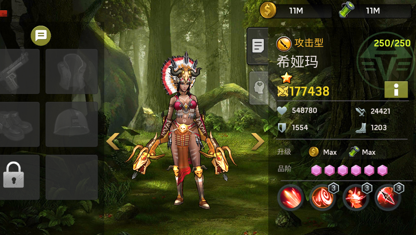 希娅玛满阶之后,普通攻击会给敌方全体赋予中毒状态,并且希娅玛自身作为一个十分强力的英雄,她杂合了许多强力英雄的优秀属性,比如类似于麦克斯那种的死亡增加爆伤攻击属性,还有强大的面板成长,都使得她无论是放在何种阵容都十分吃香。