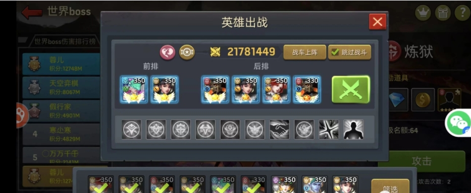 以上数据仅供参考,世界BOSS前64可参加啤酒赛,前32可参加黑水赛,只有进了32强才能参加后续的比赛,重要性不言而喻!有的区特别卷,世界BOSS都很难进32。