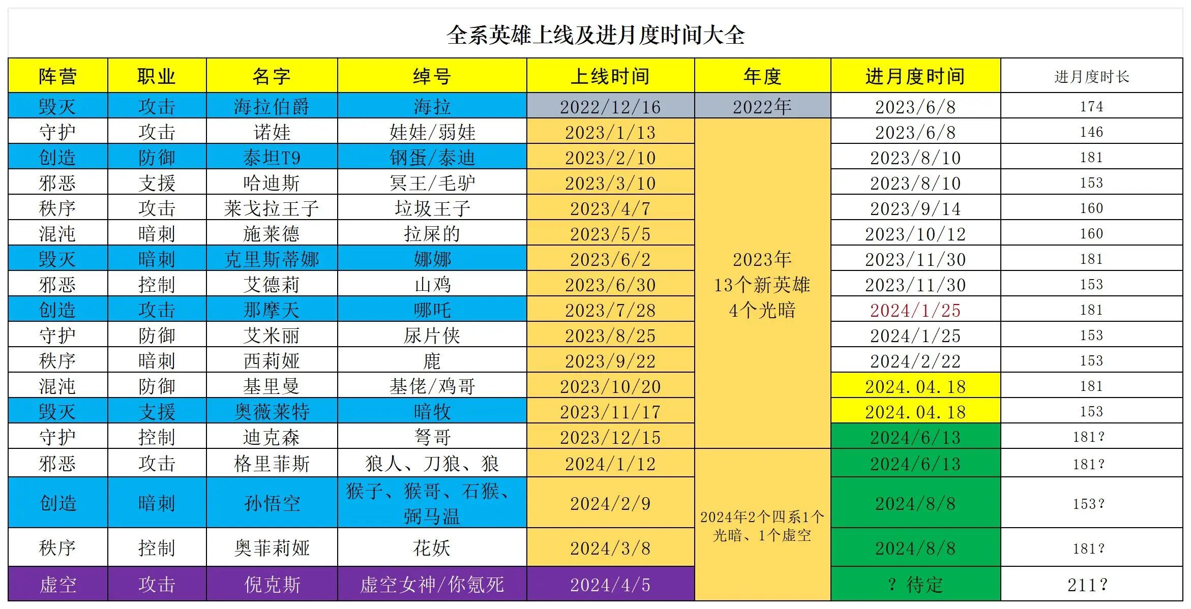 玩家可考虑做其中的1~2个四系英雄,消耗月币120-240。