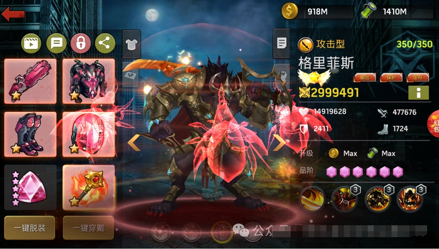 格里菲斯,狼人,四系中强度佼佼者。其他四系比较强的英雄:基里曼、尤利娅、艾米丽。除了猴子、倪克斯(有斩杀效果)外,面对其他英雄,格里菲斯的坦度非常变态,第一回合不受到任何伤害和标记,第二回合全伤害减免100%。格里菲斯(天赋二左)开局为对面攻击力最高的英雄降低15%攻击力,可针对猴子、倪克斯,也是个不错的工具人。