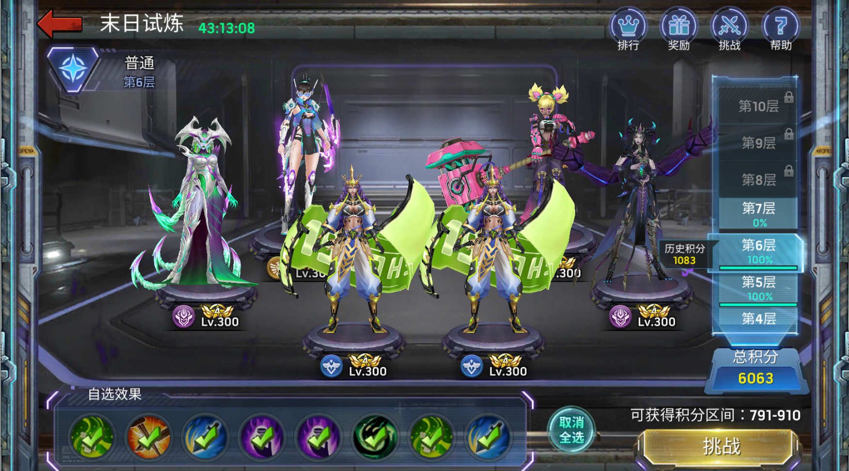 3守护狗粮+蕾贝卡+12星sp阿芙洛狄+克劳迪娅+全选(2回合结束战斗,1083分)