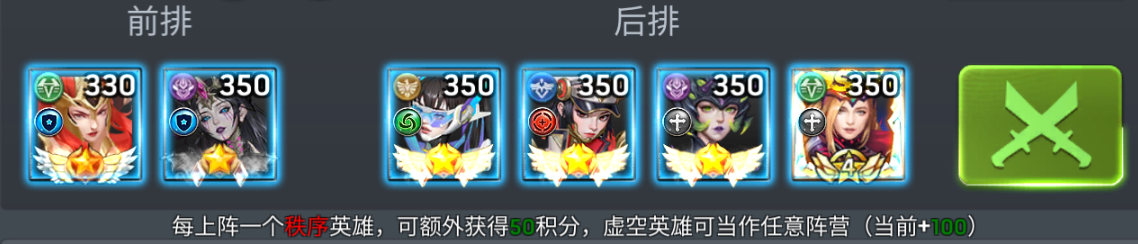 1.上阵指定阵营英雄会有额外加分,前5层混沌,后5层秩序,倪克斯部分情况下有加分补位作用